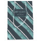 Este saco de regalo, que forma parte de un conjunto de diseño para Navidades, presenta rayas de temática exterior en tonos azul reloj, verde azulado oscuro y blanco. Se ha proporcionado texto opcional de 'Happy Holidays' y una etiqueta para añadir tu nombre y/o otro texto. Busque ID861 a ID864 para ver opciones de color adicionales y otros productos en este moderno conjunto de diseño de Navidades.