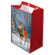 Un bolso de regalo de vacaciones realmente dulce con un ciervo festivo parado en un bosque maravilloso de invierno encantado decorado con Navidades divertidos!