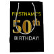 Bolsa De Regalo Mediana Negro, Faux Gold 50 cumpleaños + Nombre personaliz