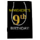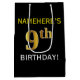Bolsa De Regalo Mediana Negro, Faux Gold 9Cumpleaños + Nombre Personalizad