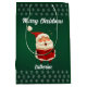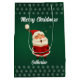 Haga que sus regalos sean realmente especiales con esta bolsa de regalo para Navidades que incluye un clásico Santa Claus. El fondo verde profundo con delicados copos de nieve añade un toque elegante, mientras que el diseño tradicional de Navidad Padre aporta la cálida nostalgia de las vacaciones atemporales. El alegre Santa de su gorra rojo encarna el espíritu festivo, la alegría y la emoción de los regalos de los Navidades. Con la personalización, puedes añadir un nombre para crear un detalle único y atento para tus seres queridos. Combinando tradición con un acabado moderno, esta bolsa es perfecta tanto para sorpresas pequeñas como para regalos más grandes.