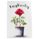 Nombre Día arbusto de rosa rojo en un maceta de flores con una etiqueta colgante. El texto "Con amor" en la etiqueta colgante no puede ser editado. Otro texto es editable.
