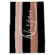 Bolsa De Regalo Mediana Nombre DIY Blanco, Rosado Dorado Vertical y Rayas