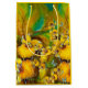 Orquídeas Amarillas Magical Gold Sparkles Estrellas Bolsa de Regalo Medio Verde. Magnífico diseño floral perfecto para cualquier ocasión. También están disponibles el envoltorio de regalo, el tejido y la cinta.