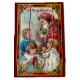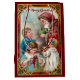 Hermosos niños recibiendo regalos de Padre Navidad en esta encantadora imagen de tarjeta de Navidades antiguos. El color de fondo es modificable.