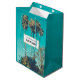 Bolsa de regalo con una hermosa fotografía. Palmeras altas con largos baúles delgados frente a un hermoso cielo verde. Esquema de color retro. Relajante y relajante.