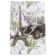 Hermoso arte vintage inspirado en París y con un coche retro, la Torre Eiffel, sellos vintage, teléfono retro y lavanda, todo en dos tonos. Elegante collage retro.