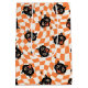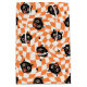 Este patrón de inspiración vintage presenta encantadores rostros de gatos negros con grandes ojos anchos y bocas abiertas, lo que les da una expresión de sorpresa o emoción. Los gatos se colocan sobre un fondo vibrante, retro naranja y crema a cuadros con un efecto ondulado y distorsionado, que evoca un sentido de movimiento lúdico. Las pequeñas estrellas negras están diseminadas por todo el diseño, añadiendo un elemento adicional de fantasía y capricho. La combinación de los colores clásicos de Halloween y los audaces y estilizados rostros de gatos crea una estética divertida y ligeramente espeluznante que se remonta al diseño vintage de mediados de siglo.
