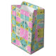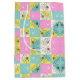 Bolsa De Regalo Mediana Patrón floral a cuadros rosa pastel, turquesa y cr