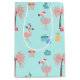 NewParkLane - Bolsa de Regalo de Navidades Tropicales Cute en colores pastel, con un divertido patrón colorido de flamencos rosados usando sombreros de Santa, con palmeras, piñas y regalos, en un suave fondo verde azulado. Mira esta colección para ver los elementos coincidentes. ¿Tienes deseos de diseño personal específicos? ¡Siéntete libre de contactarme!