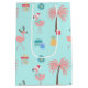 Bolsa De Regalo Mediana Patrón Santa Flamingo Diversión Navidades tropical
