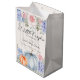 Pequeña Bolsa de Regalo Baby Shower Medium Gift Halloween Fall. ¡Hay una calabaza en camino! Celebrar la ducha de bebé Halloween, otoño con esta calabaza de color azul pastel con flores de ramo y elegante tipografía moderna de caligrafía sobre marfil