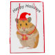 Bolsa De Regalo Mediana Pequeños Navidades cortos Hamster sosteniendo un r