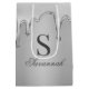 Moda Plata Liquid Chrome Drips Caliente Metalizado Monograma Bolsa de Regalo con nuestro moderno cromo líquido de moda goteando sobre un fondo metálico plateado con su monograma y nombre personalizado. Póngase en contacto con nosotros en cedarandstring@gmail.com si necesita ayuda con el diseño o productos de coincidencia.