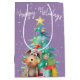 Bolsa De Regalo Mediana Perro acuarela y árbol de Navidad