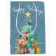 Bolsa De Regalo Mediana Perro acuarela y árbol de Navidad