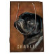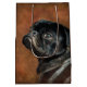 Retrato de Perro Negro Pug.Un retrato digital de pintura al óleo negro magnífico y atractivo. Vestido una camisa a rayas y con una mirada lateral/ojo de ballena, con un fondo marrón oscuro. Rico color neutro, de tierra con un aspecto rústico y angustiado. A pesar de su pequeño tamaño, los pugs tienen una personalidad destacable y encantadora. Listo para ser personalizado, simplemente añade tu nombre.