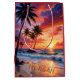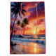 Captura la magia de un paraíso tropical con esta vívida puesta de sol en la playa con palmeras que se balancean, olas que se estremecen y un cielo brillante pintado de ardientes tonos de naranja, morado y rosa. Este vibrante diseño costero es perfecto para los amantes de la playa, los viajeros tropicales, los atardeceres y todo aquel que sueña con escapar del océano. Un regalo impresionante que aporta calidez y alegría con un nombre/monograma personalizado escrito en la arena o borrado sólo por ilustracion.