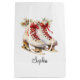 Una bonita bolsa de regalo con un par de patines de hielo con cordones rojos y vegetación. Personalizar con patinaje sobre hielo.
