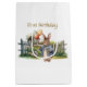 Peter el conejo en su chaqueta azul con globos de colores Primer cumpleaños saludo