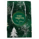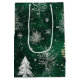 Bolsa De Regalo Mediana Pinos dorados Copos de nieve plateados Hunter Gree
