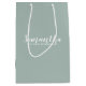 Bolsa de regalo de la propuesta de la dama de honor moderna que presenta el nombre de la dama de honor en un estilo de letra de escritura moderno y blanco con texto en un estilo de letra sans serif moderno en un fondo verde sabio. También perfecto para criada de honor, chica de flores y más.