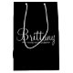 Bolsa de regalo de la propuesta de la dama de honor moderna en blanco y negro con el nombre personalizado de la dama de honor en estilo moderno de caligrafía con el título en estilo moderno de letra sans serif. También es perfecto para criada de honor, chica de flores, padrino, mejor hombre y portador de anillo.