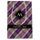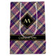 Diseño morado, amarillo dorado y azul tartán. Patrón sin foco. texto personalizado y monograma.