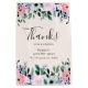 Gracias bolsa de regalo con un diseño floral de bonito hecho con acuarelas. Flores de jardín rosas, violetas y verdes.