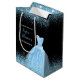 Esta bolsa de regalo de moda incluye un hermoso vestido de color azul claro y elegante vestido de color azul claro sobre un fondo negro con purpurina falso en la parte superior e inferior de ambos lados con un mensaje especial en cada lado. El texto puede ser personalizado para satisfacer sus propias necesidades.