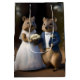 Se muestra en sus trajes de boda a dos quokkas australianos que se casan. Personalice con el nombre de la pareja de recién casados.
