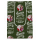 Sumemos a la magia de Santa esta temporada navideña con esta bolsa de regalo de Navidades verdes y blancos personalizados. La bolsa de regalo muestra un patrón con el texto "Reindeer Express" y permite añadir el nombre y la foto de tu pequeño o chica! Esta bolsa de regalo hace una maravillosa adición personalizada de un regalo de Santa Claus! Consulte la colección completa para ver las opciones de gran tamaño y las versiones con colores adicionales.