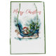 Mira el magnífico trineo azul de los Navidades adornado con un magnífico garland, un bonito reno, ramas de abetos exuberantes y una decoración deliciosa. Este cautivador despliegue refleja el espíritu de la temporada.