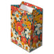 This retro daisy floral gift bag features bold orange, teal, coral, and yellow flowers inspired by groovy 70s style. Perfect for birthdays, bridal showers, Mother’s Day, spring parties, or any celebration that needs a pop of bright floral charm.
