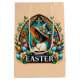 Experimente la belleza de Pascua con nuestro vívido y poderoso logo. Con un colorido arco de vegetación floral, una elegante mujer afroamericana en oración con gorra de la iglesia, adornada con mariposas, huevos de Pascua y una cruz sagrada dorada. Debajo del arco se encuentra el elegante 'Happy EASTER' en negrita. Celebre la temporada con este diseño simbólico y elegante. Agregue el texto de su personalizado si lo desea.