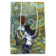 Diseño artístico de un chica y un niño tomándose de la mano caminando por el bosque.