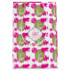 Plantilla de monograma verde rosa. Ilustracion rosa y verde, suave, de pellizco, perlas de bonito, rana linda y hiedra. Más lindo.