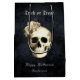 Bolsa de regalo personalizada con cráneo floral gótico. Esta espeluznante pero elegante bolsa de regalo es perfecta para cualquier amante de Halloween que quiera añadir un poco de sabor gótico a su regalo de regalo. El diseño presenta el cráneo floral gótico sobre un fondo texturado negro con las palabras " Trick or Treat " El cráneo se acentúa con hermosas rosas blancas. Personalice el diseño con su nombre y texto personalizado para que sea realmente único.