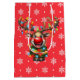 Rudolph el reno de nariz roja con copos de nieve blancos en la bolsa roja de regalo medio