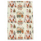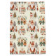 A wonderful winter scene featuring Santa Claus, snowmen, children, and bears in sweaters depicted in a traditional folk art style on a cream background.