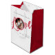 Este diseño presenta una bonita bolsa de regalo para escritura caligráfica navideña con letras de guión de caligrafía amorosa, plantilla de fotografía familiar, diseño de tipografía en rojo y blanco, letra de guión de caligrafía moderna y elegante, productos de envoltura de vacaciones para Navidades, saludo de mensaje de regalo personalizado para personalizados, embalaje de regalo de papel de vacaciones para Navidades, empaque de regalo de favor de fiesta simplista, diseño clásico tradicional de invierno
