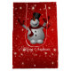 Bolsa De Regalo Mediana Snowman sobre fondo rojo