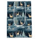 A snowy midnight blue field full of tan deer and robust pine trees.