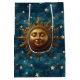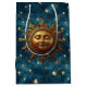 En medio de un fondo celeste estrellado, el rostro sereno de un sol dorado estilizado.