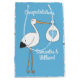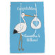 Un diseño de ducha para bebés muy agradable, ideal para una ducha de primavera con un personalizado de cigüeña azul.