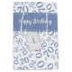 Personalice fácilmente la etiqueta azul y "Feliz cumpleaños 70" con la plantilla de texto suministrada. Este diseño es un patrón de número aleatorio azul y blanco, con el número de hito 70 repetido en tamaños y ángulos variados en una impresión completa. Hay una banda azul y una etiqueta de regalo, impresa en la parte delantera, con plantillas de texto para que puedas personalizar fácilmente el diseño. El fresco patrón numérico es cumpleaños divertidos, también es adecuado para todas las ocasiones donde se celebra el número setenta.