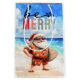 Bring sunny holiday vibes to your presents with this cheerful Surfer Santa gift bag! Featuring Santa in his Hawaiian shirt and red hat, standing proudly with his surfboard on the sandy beach. and gentle turquoise waves complete this bright watercolor coastal Christmas scene.
