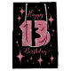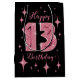 Tipografía purpurina rosa número 13 y guión "Feliz cumpleaños" bolsa de regalo para hacer glamorosamente divertido el día especial de tu chica de cumpleaños.