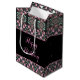 Personalice el texto de feliz cumpleaños a cualquier ocasión especial en esta bolsa de regalo decorativa de color negro con rosa y verde azulado, el texto también se puede eliminar si lo prefiere, y el fondo junto con la banda se puede cambiar a cualquier color para complementar su estilo.