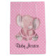 Bolsa de regalo de diseño de punto de elefante rosa Polka con tu elección de color de fondo y texto de personalizable. Para que no haya texto, elimine el texto de ejemplo y deje en blanco.